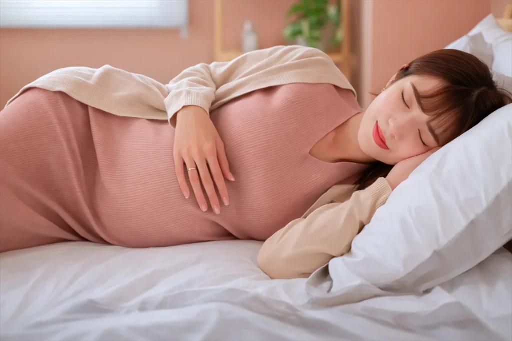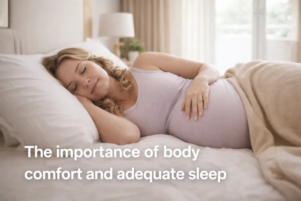 - Sleeping position: Always try to sleep on your left side; this allows the blood and nutrients to flow best to the baby.