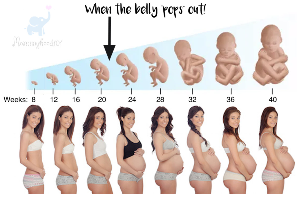 - Abdominal enlargement: As the uterus rises from the pelvis, the abdomen gradually begins to become visible.